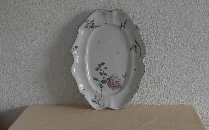 Petit plat sur talon diamètre 21.30 cm Usures d’email sur le fond et au talon +égerenures sur la tranche Période Fränkel und Schreck 1744-1747 Prix 180.00 Euros