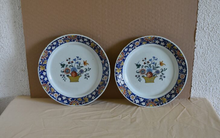 Deux assiettes diamètre 24.20 cm Quelques petits manques d’email sur la tranche Prix 880.00 Euros