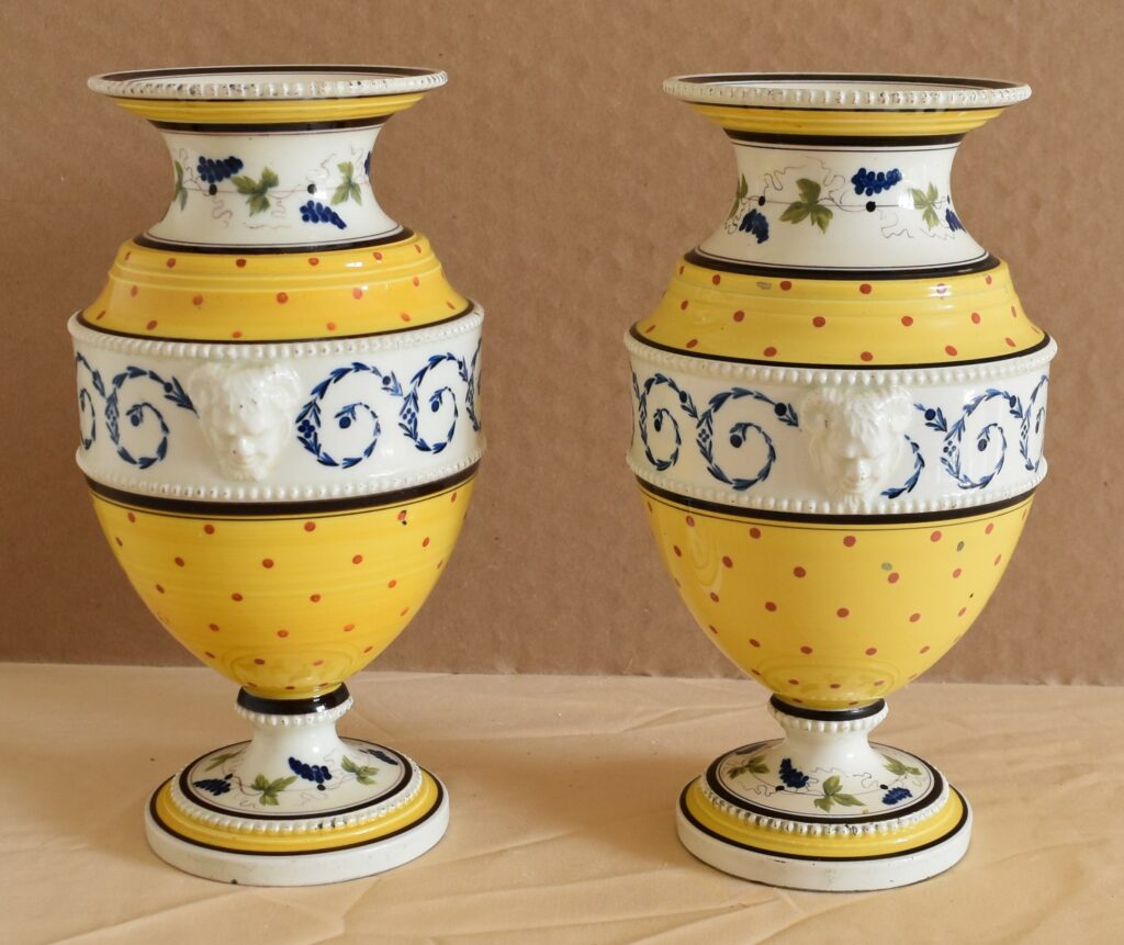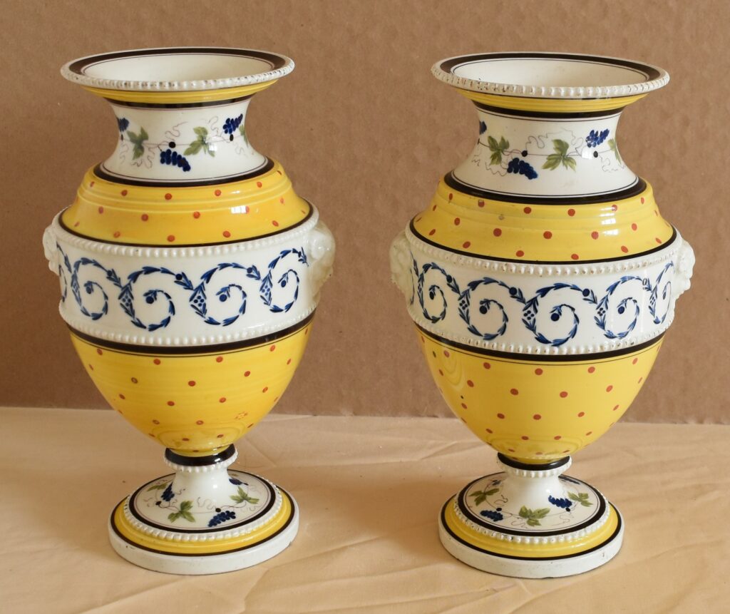 Posted on septembre 15, 2025septembre 18, 2025 by admin Nyon début XIXeme Dortu Paire de vase hauteur 23.30 cmUn marqué un éclat sur un talon et un éclat récolémodel similaire musée Ariana
