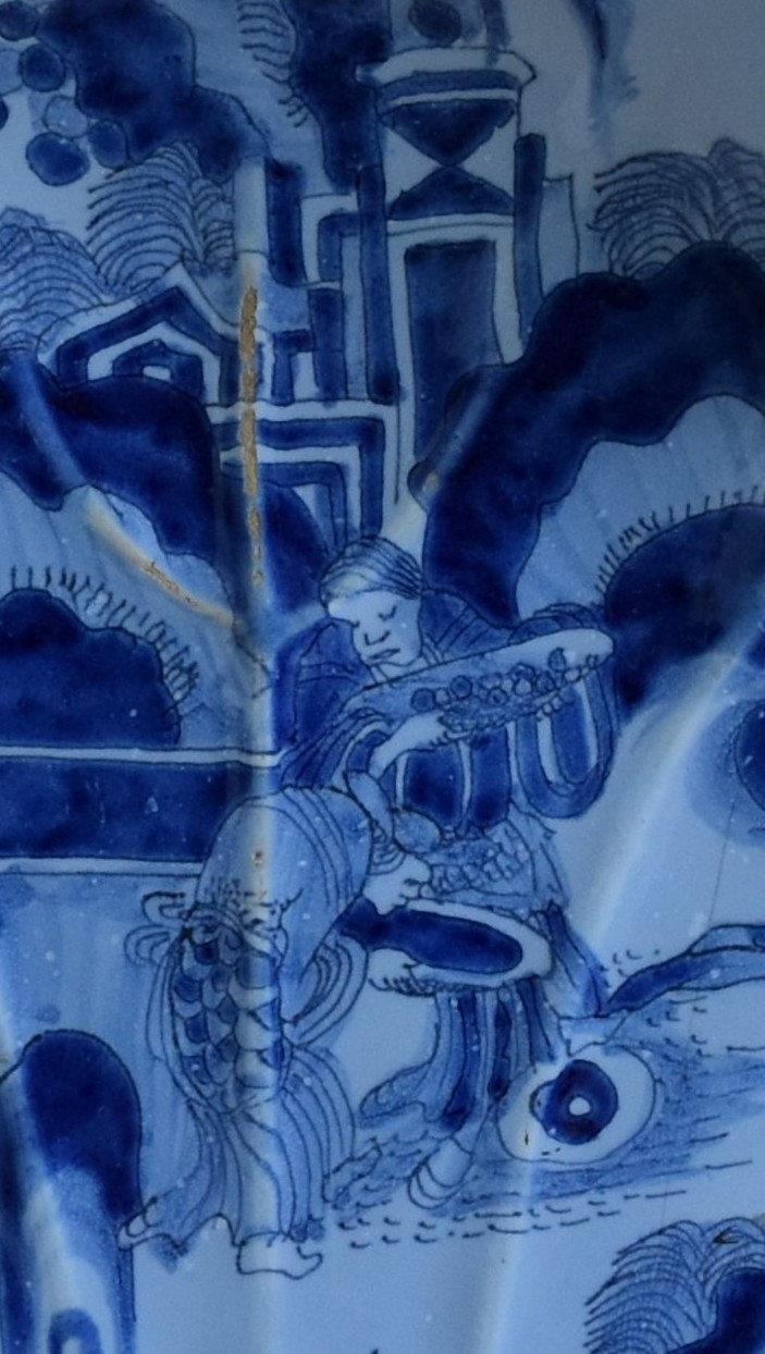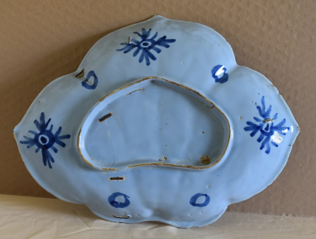 Posted on octobre 5, 2025 by admin Nevers XVIIeme (34) Ravier ‘feuille de lotus’ Largeur 35.80 cm Restauration aux agrafes et usures Prix 280.00 Euros