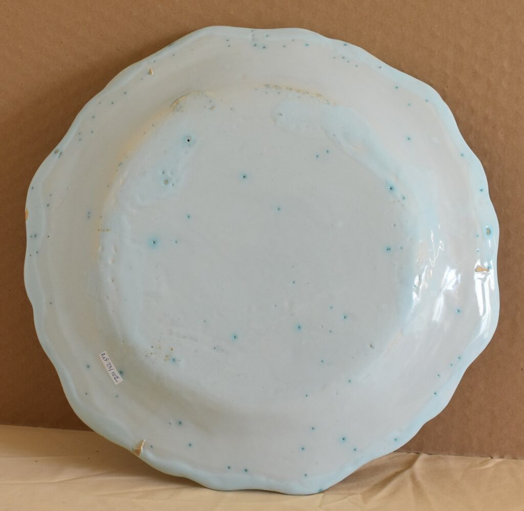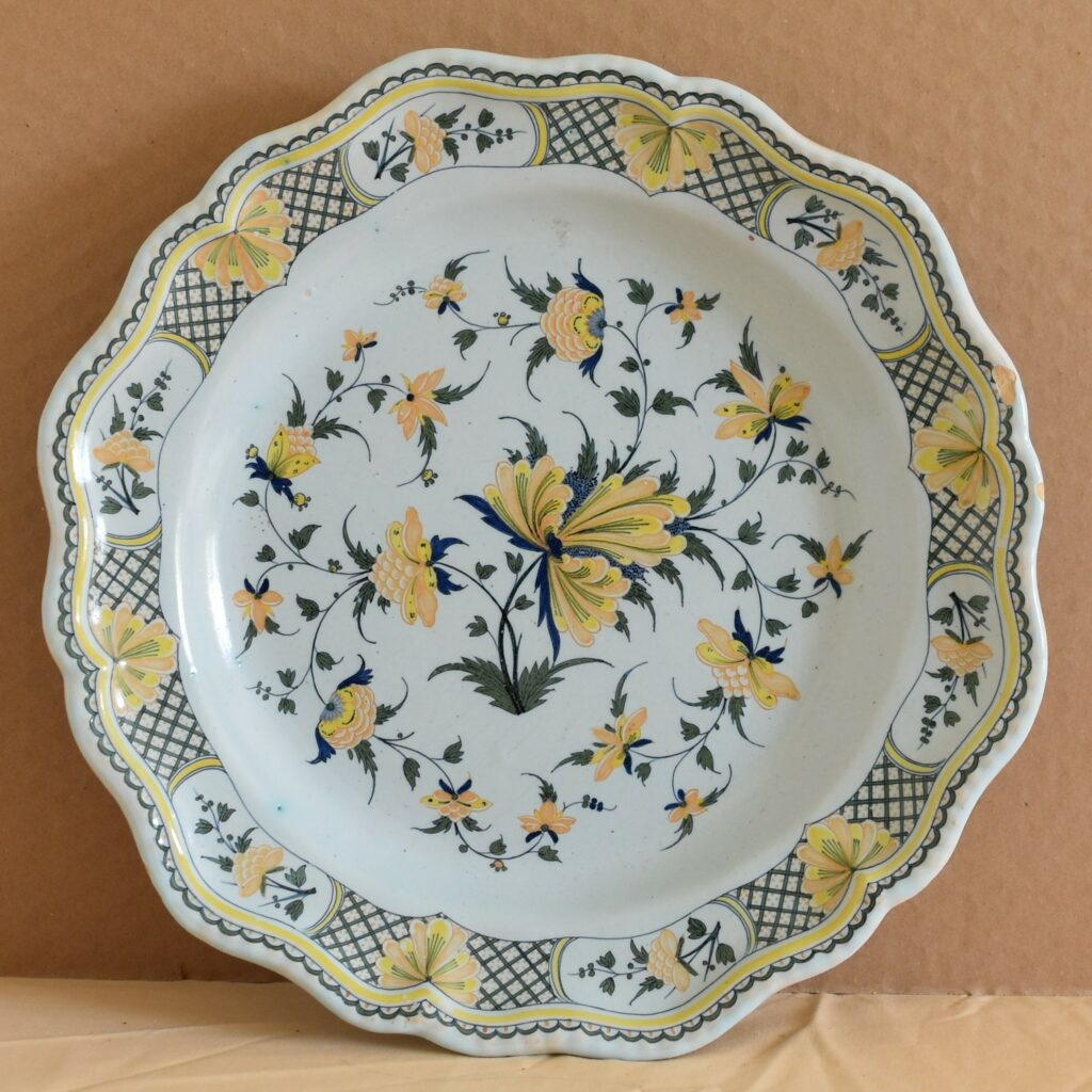 Posted on octobre 29, 2025 by admin Rouen XVIIIeme (27) Plat ‘aux sainfoin’ diamètre 34.60 cm Petits éclats visible Prix 600.00 Euros