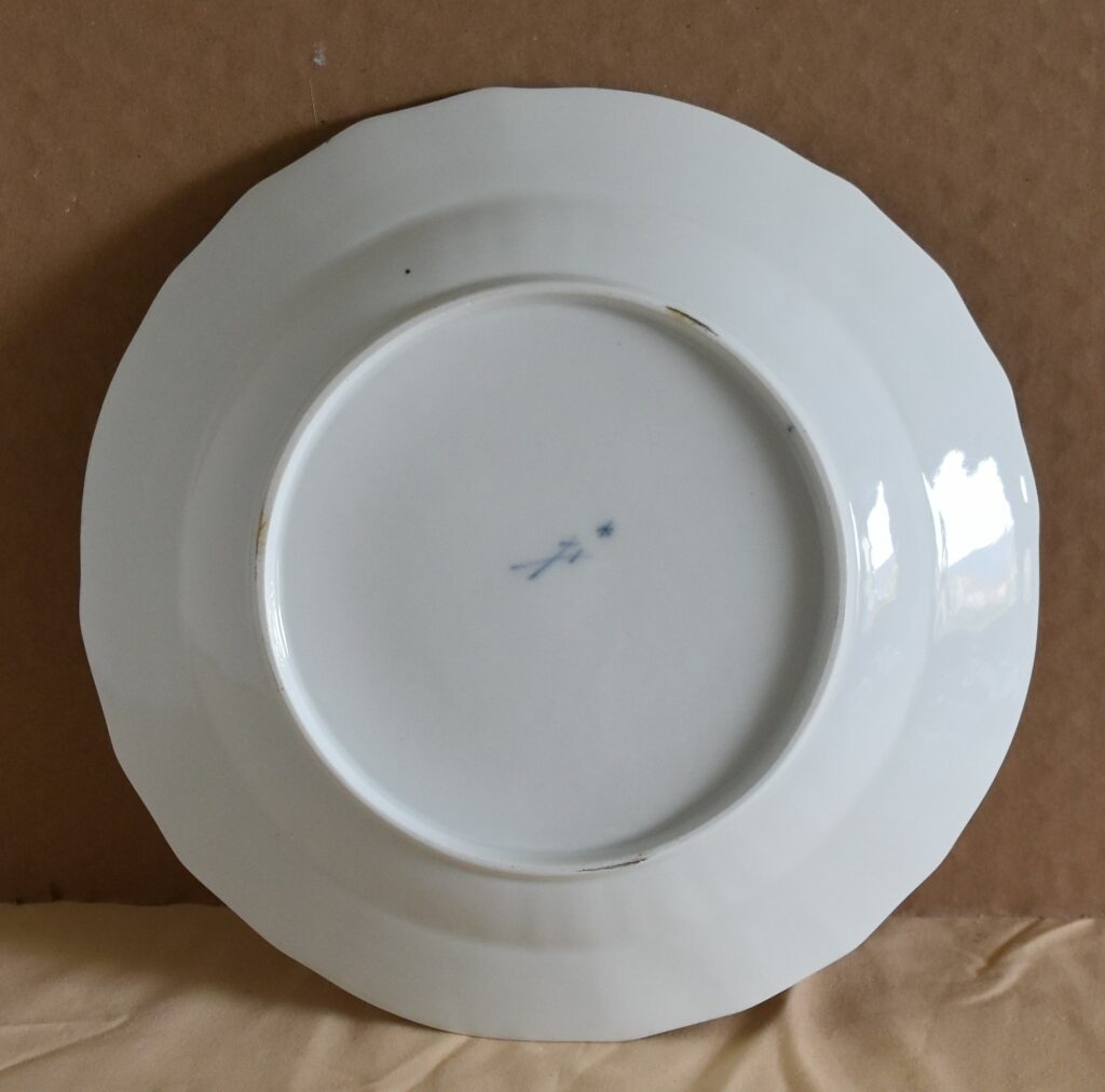 Posted on décembre 22, 2025 by admin Meissen XVIIIeme Marcolini Assiette diamètre 23.60 cm Usure de l’or sur la tranche Prix 180.00 Euros