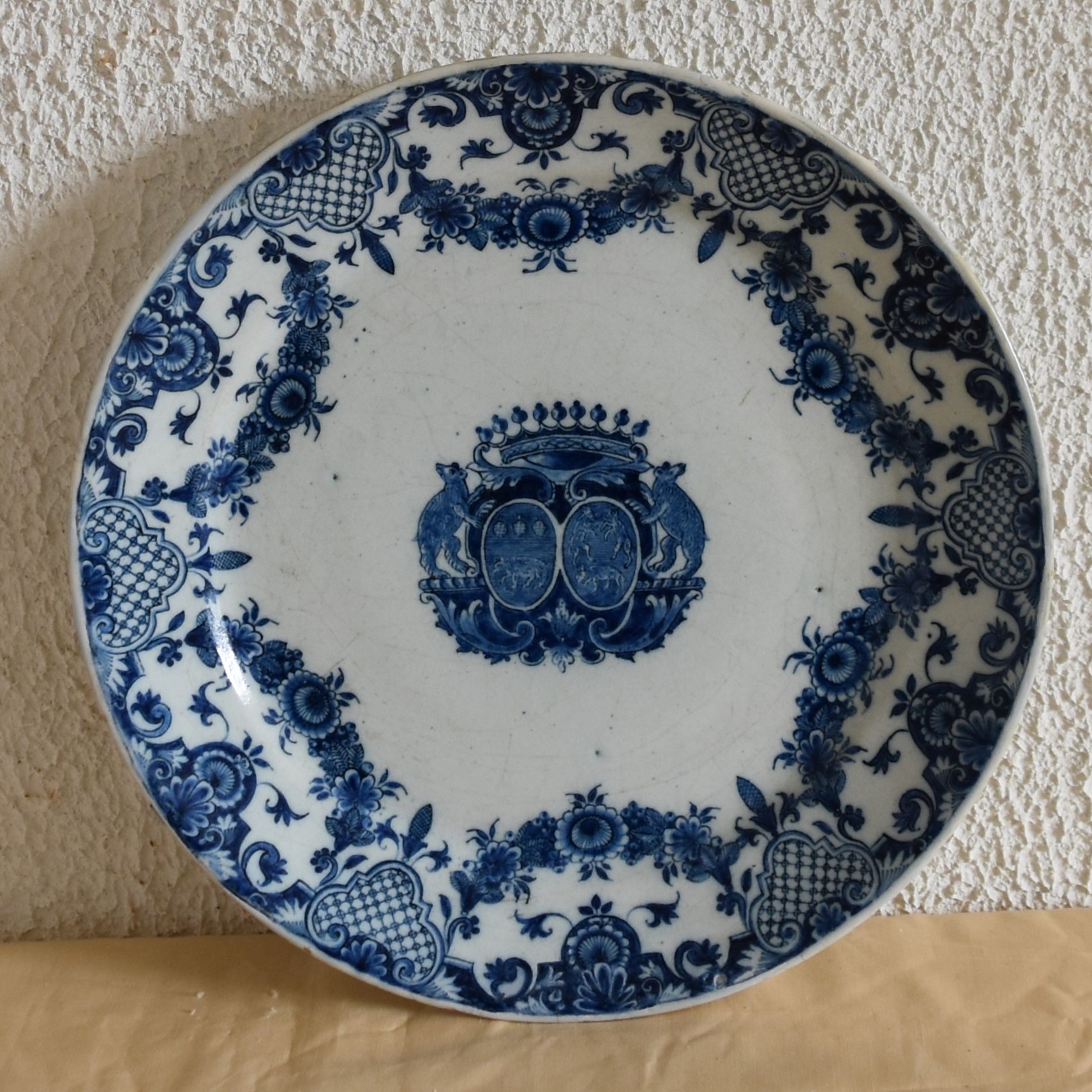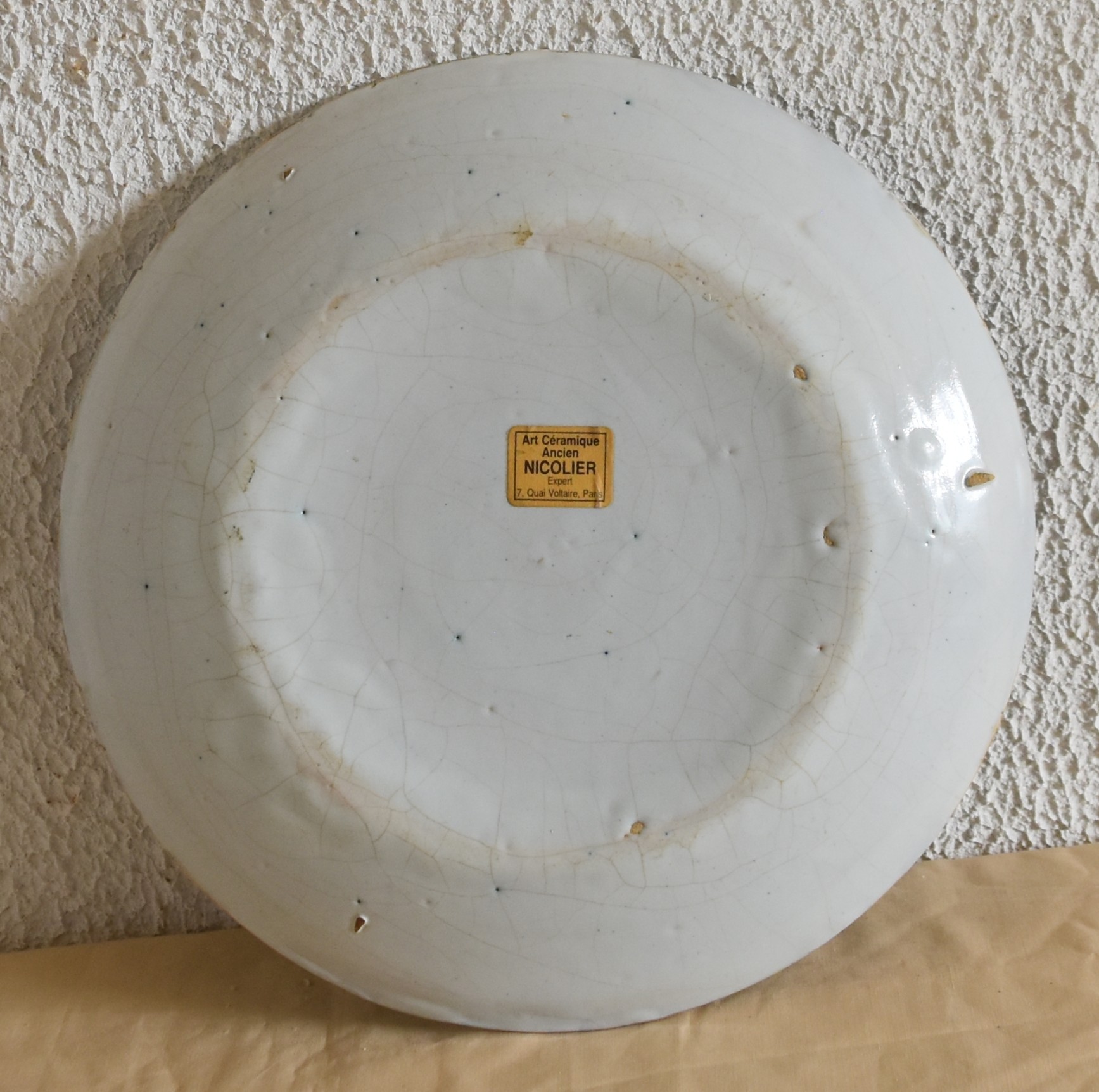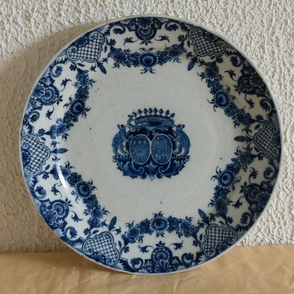 Posted on février 7, 2026février 7, 2026 by admin Rouen début XVIIIeme Assiette diamètre 23.80 cm Jean-François de La Loge (1676-1752) et Jeanne Le Belin de Châtellenot. Un éclat restauré Prix 1200 Euros
