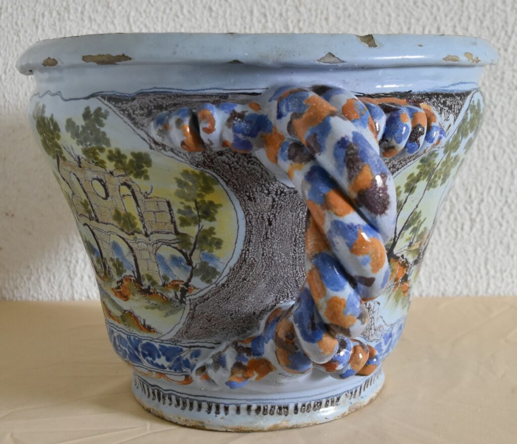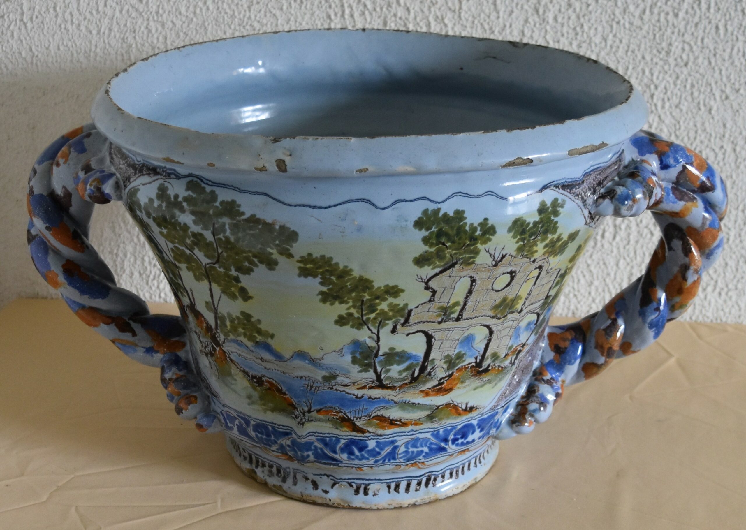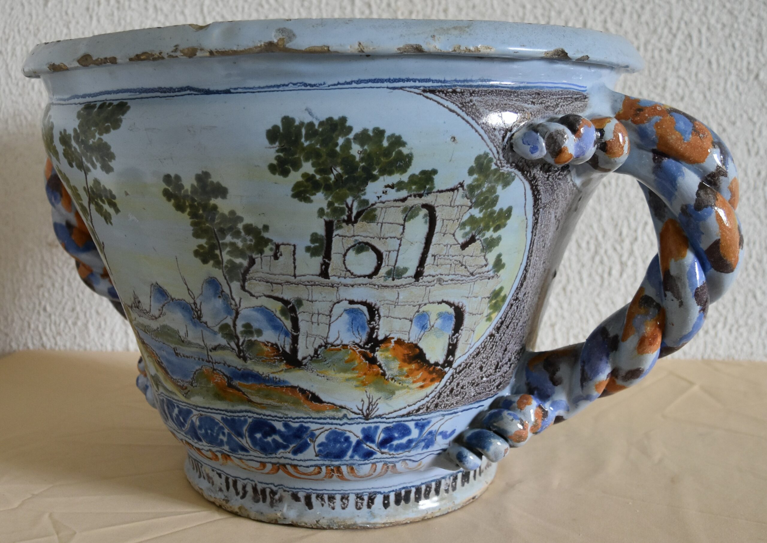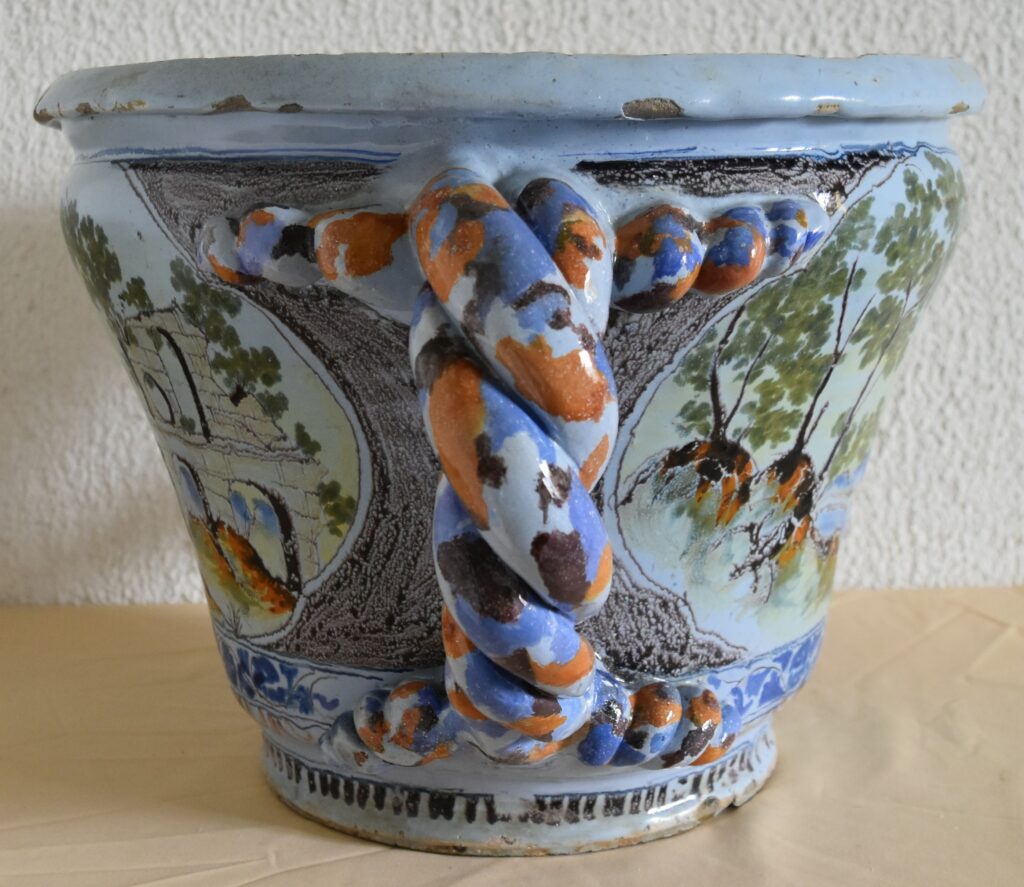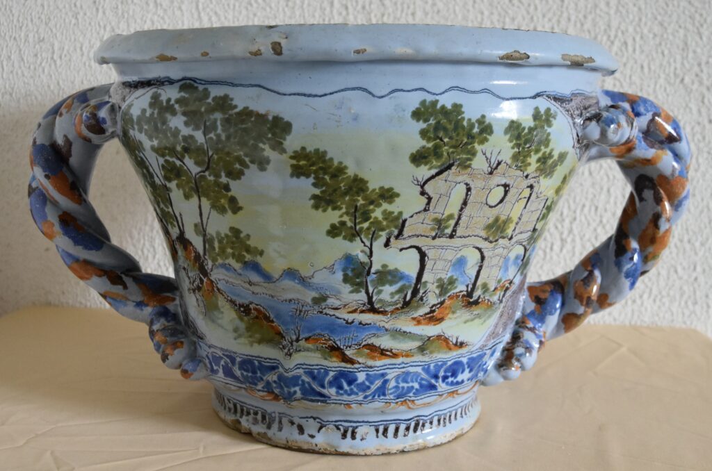 Posted on mars 27, 2026mars 27, 2026 by admin Nevers XVIIeme (37) Pot à plantes à anses torsadées Décor ‘à la palette’ largeur total 47.00 cm Restaurations au 2 anses Prix 2200 Euros