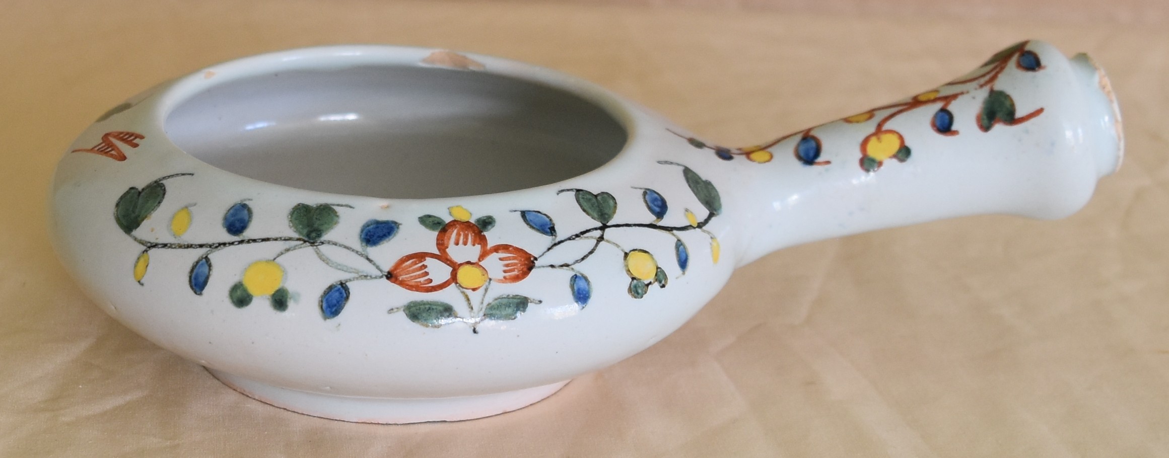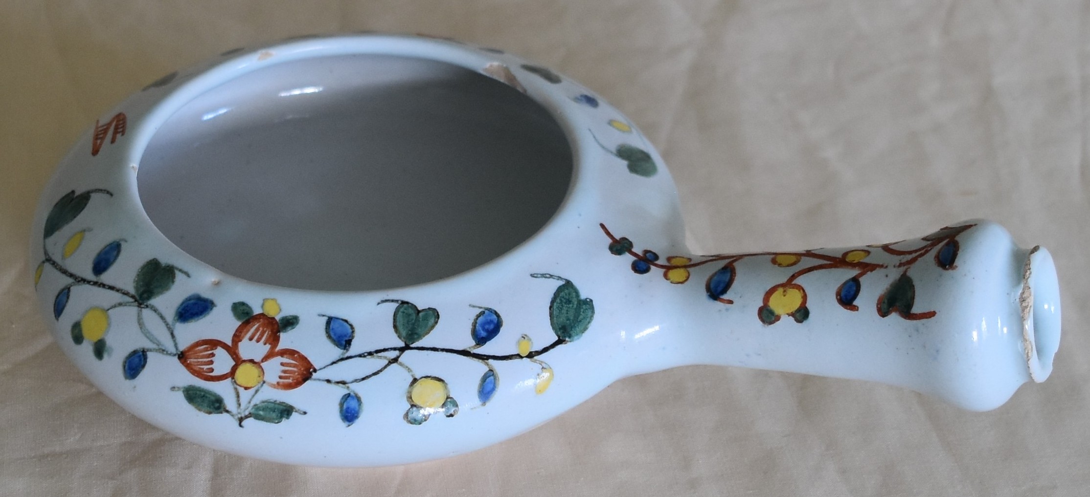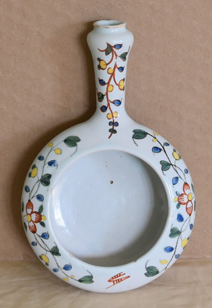 Posted on mars 30, 2026 by admin Rouen XVIIIeme (28) Ou Quimper Palette longueur total 20.10 cm égrenures à la poignée et sur la bordure intérieur Prix 170.00 Euros